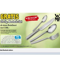 Beim Bürobedarfsshop office disocunt kann man ab einem Mindestbestellwert von 299€ ein 24 teiliges WMF Besteckset als Prämie dazu erhalten. Das Angebot gilt noch bis zum 12.04.